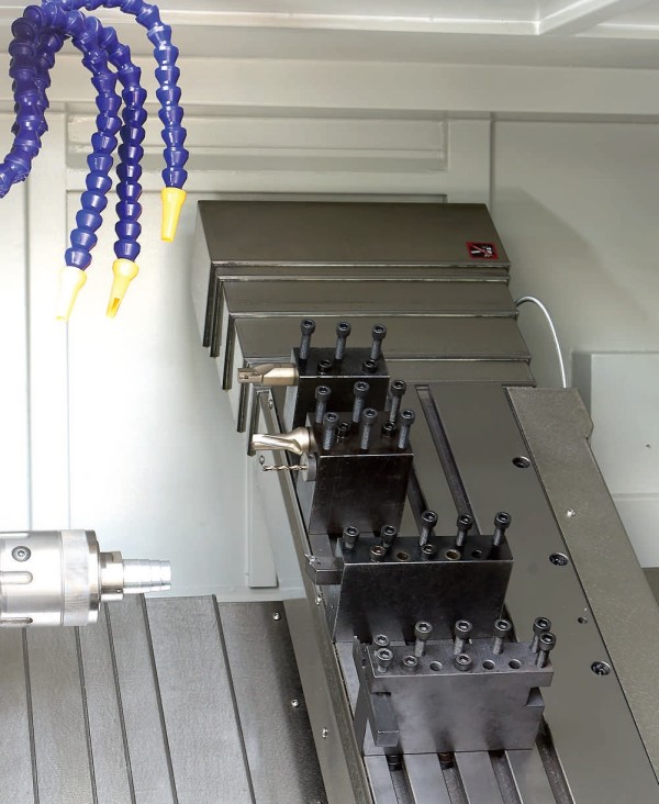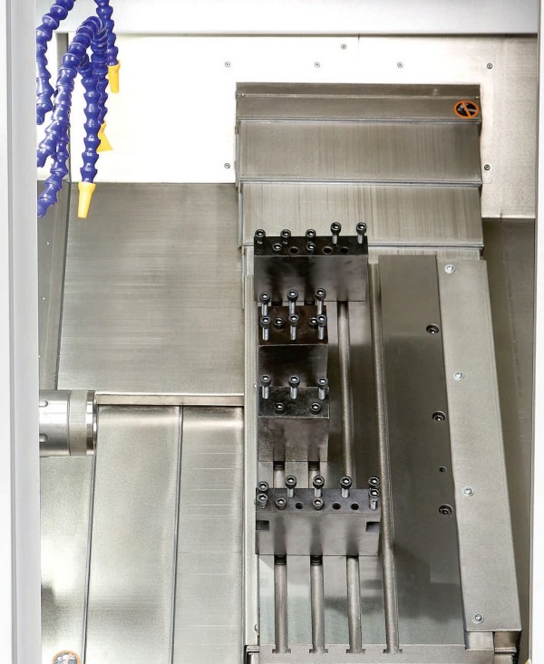· Môže byť vybavená vežovými hlavami, hlavami muškárov, výkonnými hlavami atď. Výkonnú hlavu možno nakloniť od 0° do 90° pre integrované frézovanie a sústruženie.